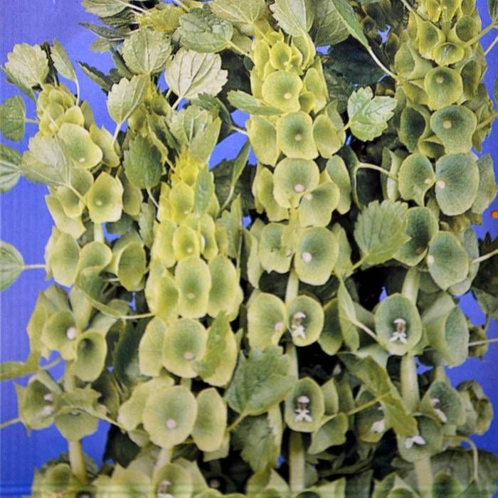 La Monucella (Molucelle) appelée aussi "Bells of Ireland" est une herbe estivale à floraison annuelle et unique. De la même famille que la menthe cette herbe non comestible se développe rapidement produisant des pointes dressées de longues et attrayantes petites fleurs blanche ou rose-violacées odorantes entourées par des feuilles pâles verte.